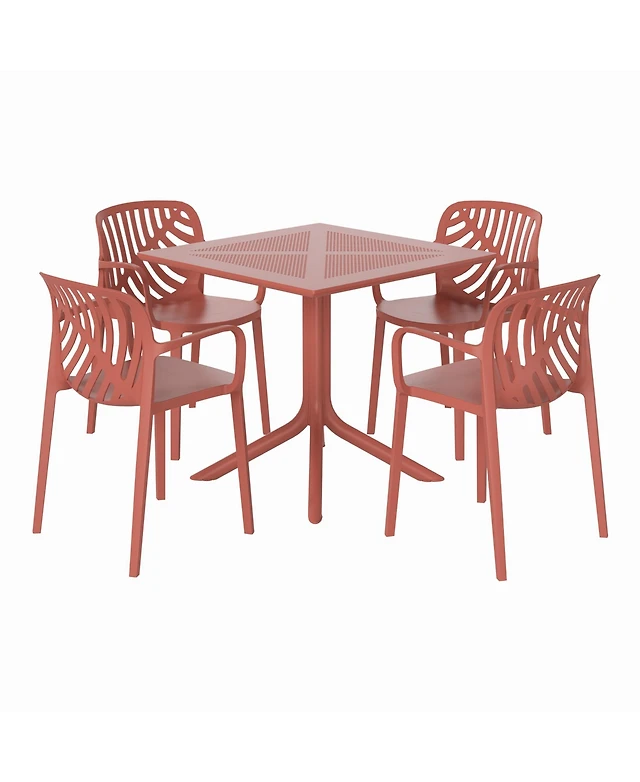 WestinTrends 5-Piece Indoor Outdoor Metal Patio Dining Table Set With Stackable Plastic Arm Chairs