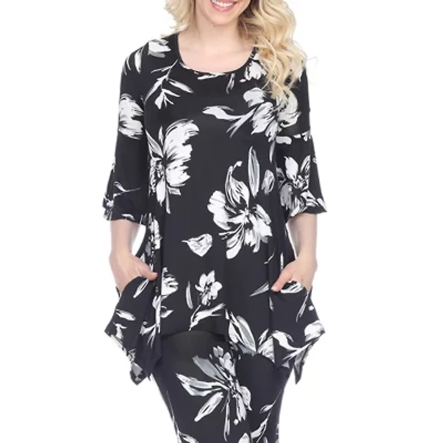 White Mark Womens Scoop Neck 3/4 Sleeve Tunic Top