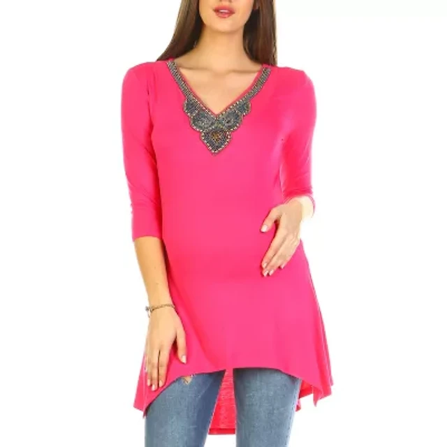 White Mark Maternity Womens Round Neck 3/4 Sleeve Tunic Top