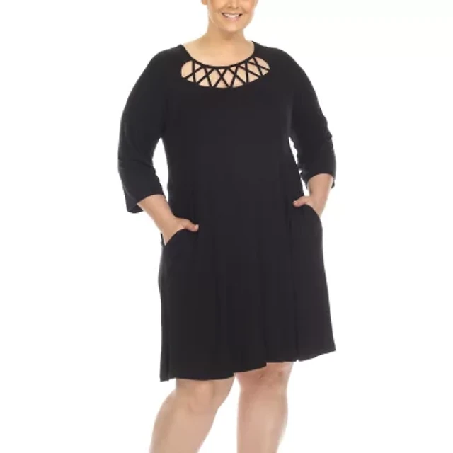 White Mark Womens Plus Short Sleeve A-Line Dress