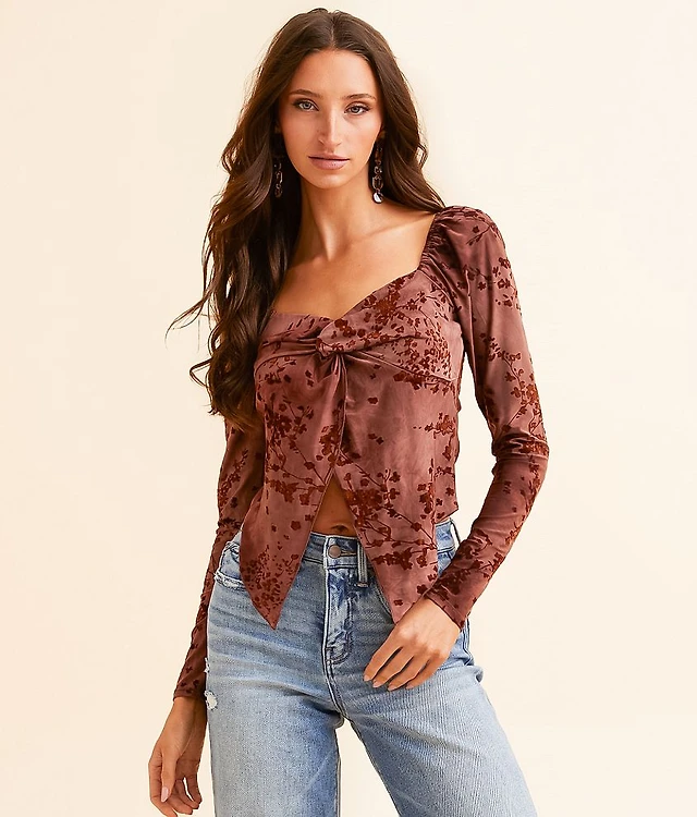 Velvet Flocked Floral Cropped Top