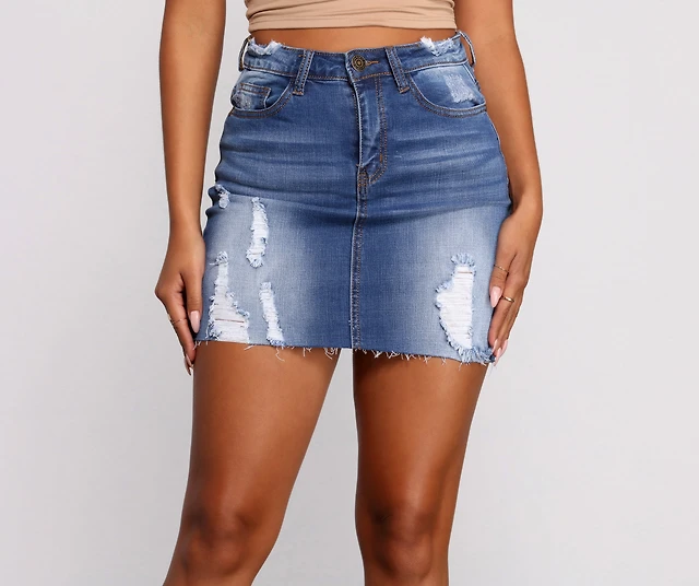 Button Up Raw Hem Denim Mini Skirt