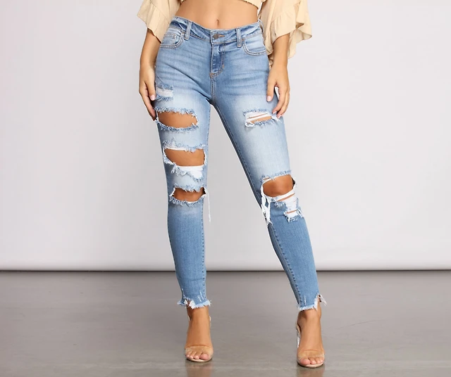 Taking Chances Destructed Raw Edge Skinny Jeans