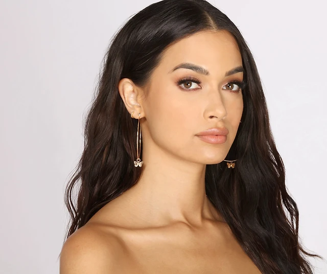 Cubic Zirconia Buttery Pendant Layered Necklace