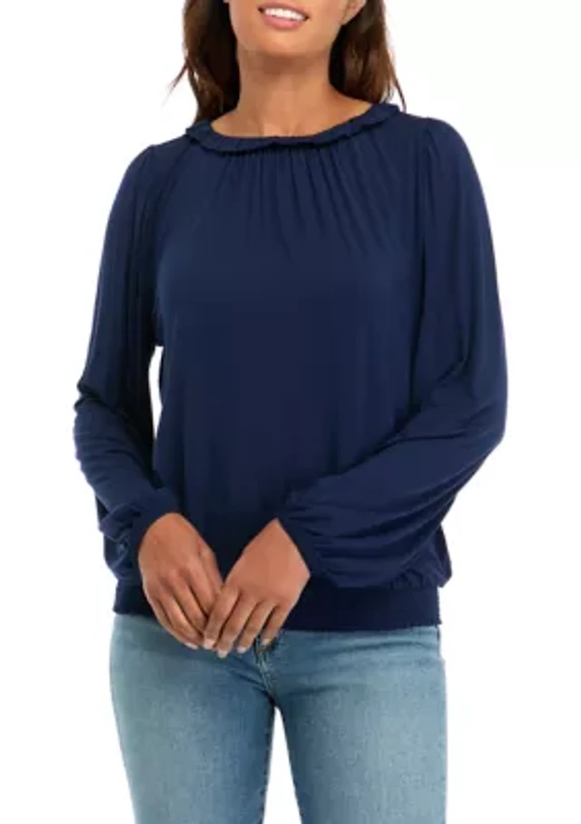Women's Long Sleeve Fine Seamed Pullover Sweater