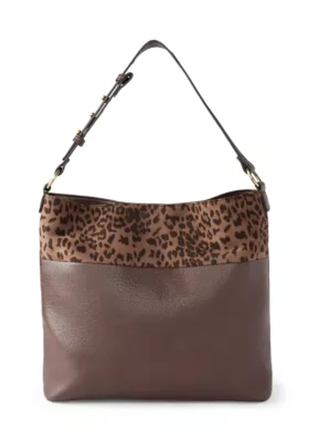 Gold Tone Long Layered Leopard Print and Metal Disc Pendant Necklace