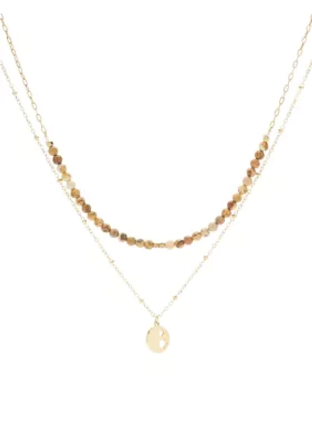 Gold Tone Genuine Stone & Star Disc Duo Pendant Necklace Set