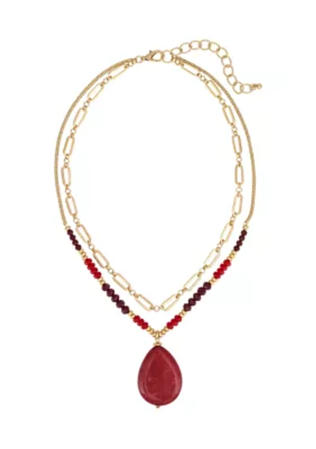 Lab Grown Gold Tone Blue Enamel and Crystal Heart Duo Necklace Set