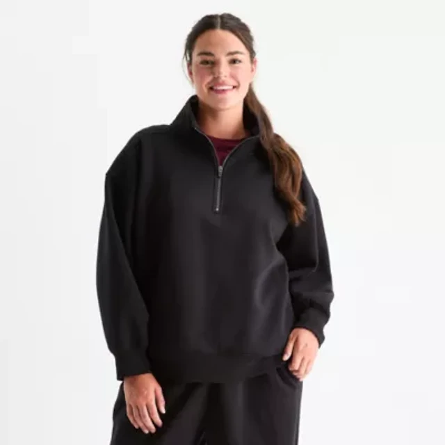 Xersion Womens Classic French Terry Mock Neck Pullover Plus
