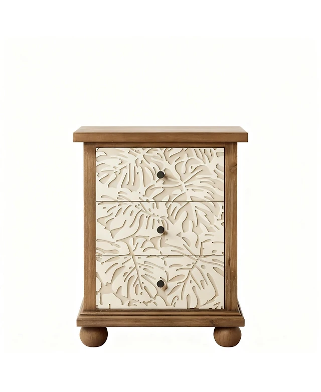 Yigii Vintage Curved Front Nightstand with Leaf Handles