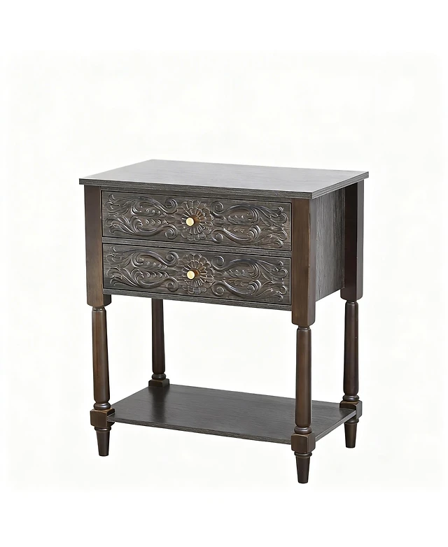 Yigii Wood 2 Drawer Farmhouse Nightstand with Antique Finish