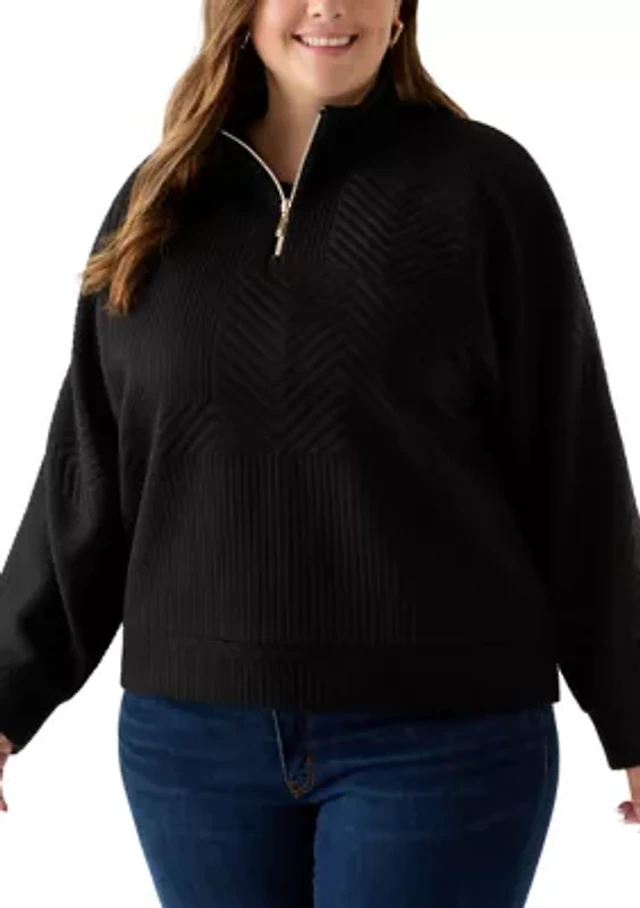 Plus Long Sleeve Textured Quarter Zip Pullover