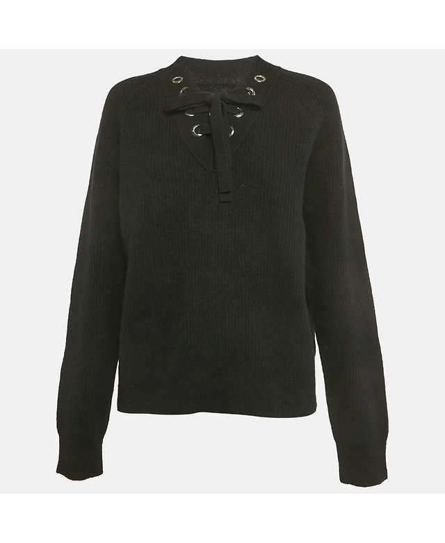 Pre-Owned Zadig & Voltaire Women's Black Rib Knit Lace-Up Kassy Sweater