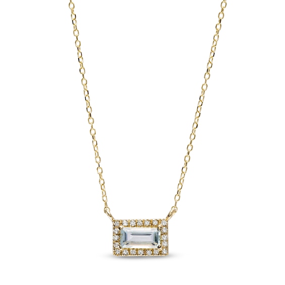 Aquamarine and Diamond Accent Frame Pendant in 10K Gold