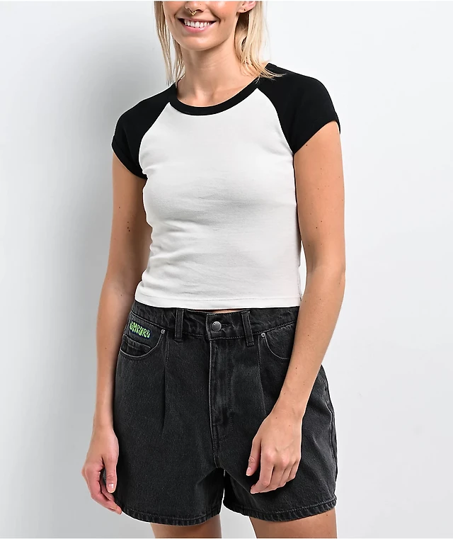 Zine Pammie Heather Grey & Black Crop Raglan T-Shirt