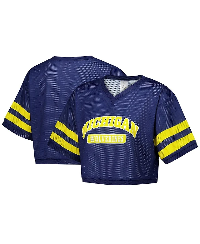 ZooZatz Women's Navy Michigan Wolverines Mesh Cropped V-Neck T-Shirt
