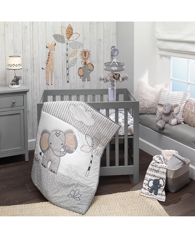 Lambs & Ivy Jungle Party 3-Piece Elephant/Monkey Baby Crib Bedding Set