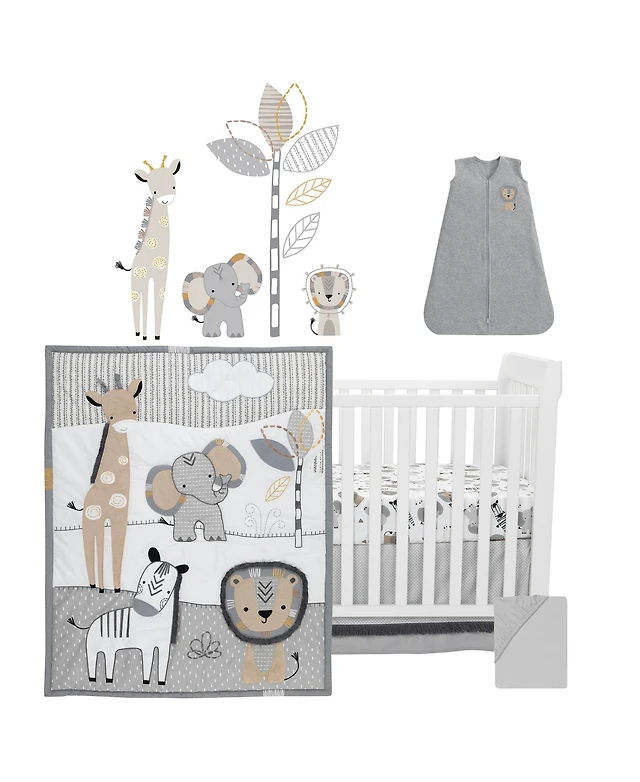 The Peanutshell Safari Adventures 7 Piece Baby Nursery Crib Bedding Set, Quilt, Crib Sheets, Crib Skirt, and Changing Pad Cover