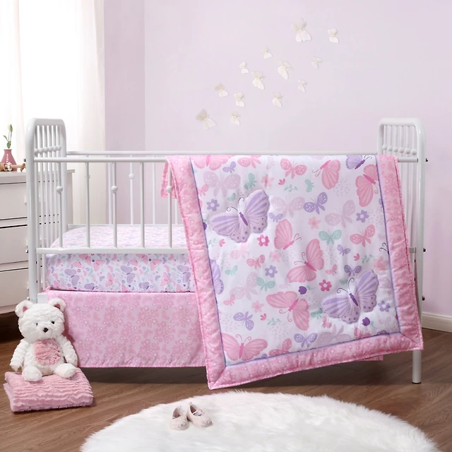Lambs & Ivy Butterfly Dreams Pink/Gold 3-Piece Nursery Baby Crib Bedding Set