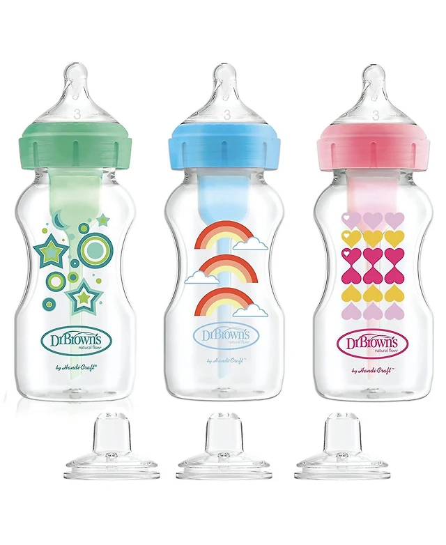 Dr. Browns Baby Anti-Colic Options+ Wide-Neck Baby Bottle to Sippy Bottle, 9oz, 3 pack