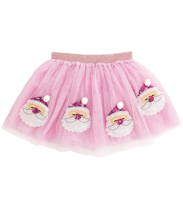 Mud Pie Little Girls Sequin-Embellished Santa Face Applique Layered Mesh Skirt