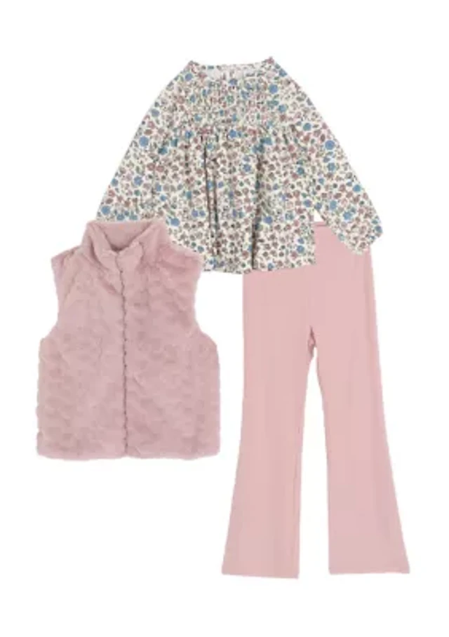 Girls 7-16 Metallic Vest with Long Sleeve Printed T-Shirt