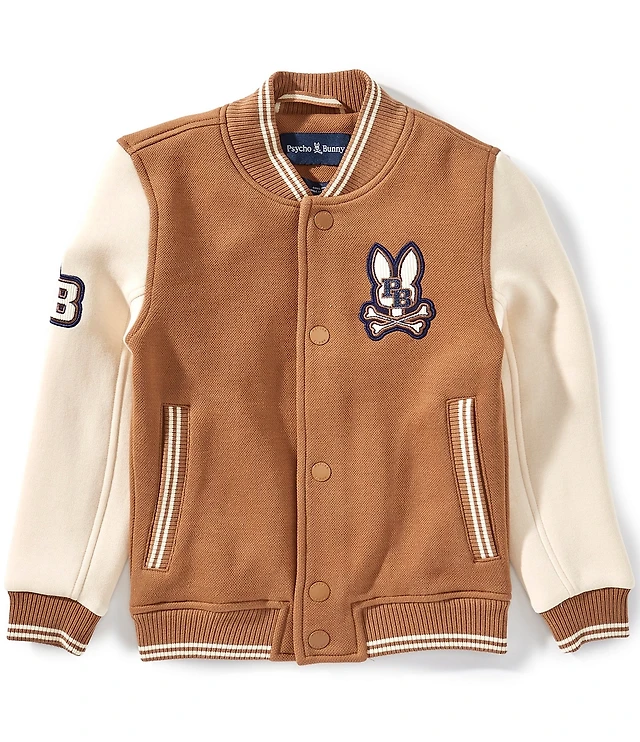 Psycho Bunny Big Boys Long-Sleeve Wade Color Block Jersey/Canvas Bomber Jacket