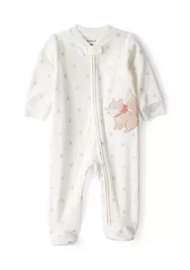 Baby Girls Microfleece Fox Sparkle Printed Footie Pajamas