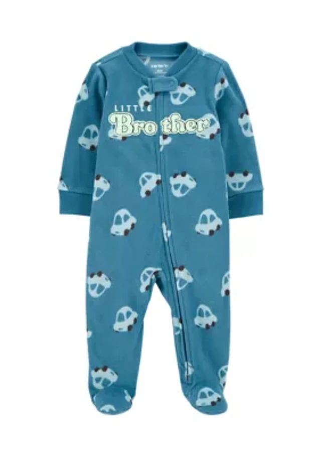 Baby Girls Microfleece Bow Printed Sister Zip Footie Pajamas