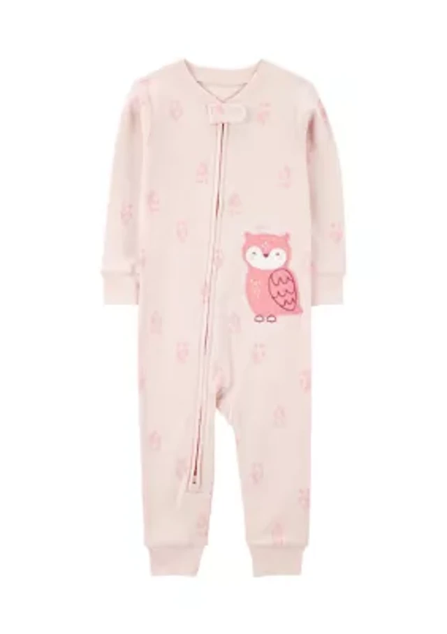 Baby Girls Microfleece Animal Printed Zip Footie Pajamas
