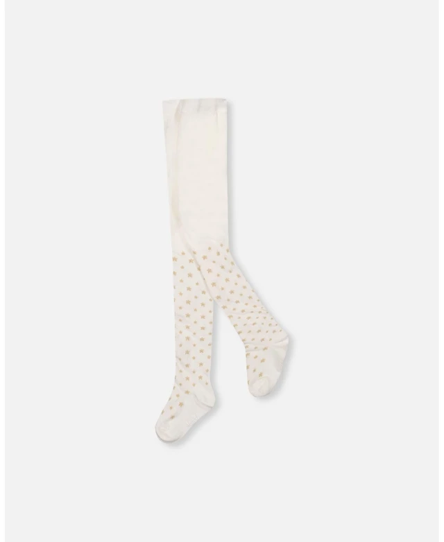 Deux par Baby Girl Knit Tights Off-White with Golden Star Pattern