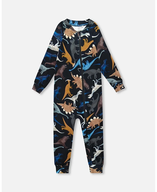 Deux par Baby Boy One-Piece Thermal Underwear Black Dinosaur Print
