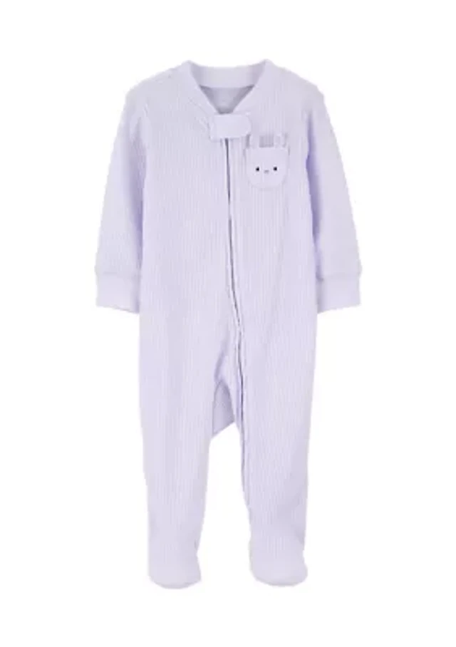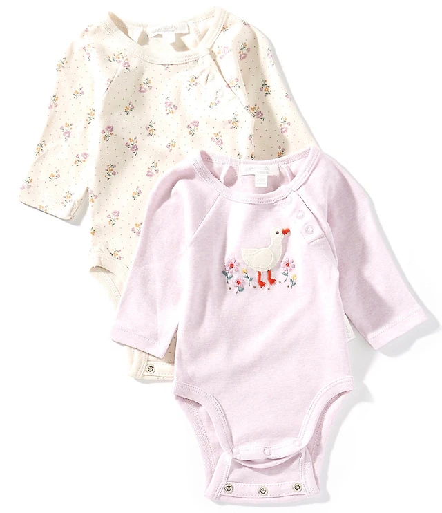 Baby Girls Ribbed Floral Print Long-Sleeve Bodysuit