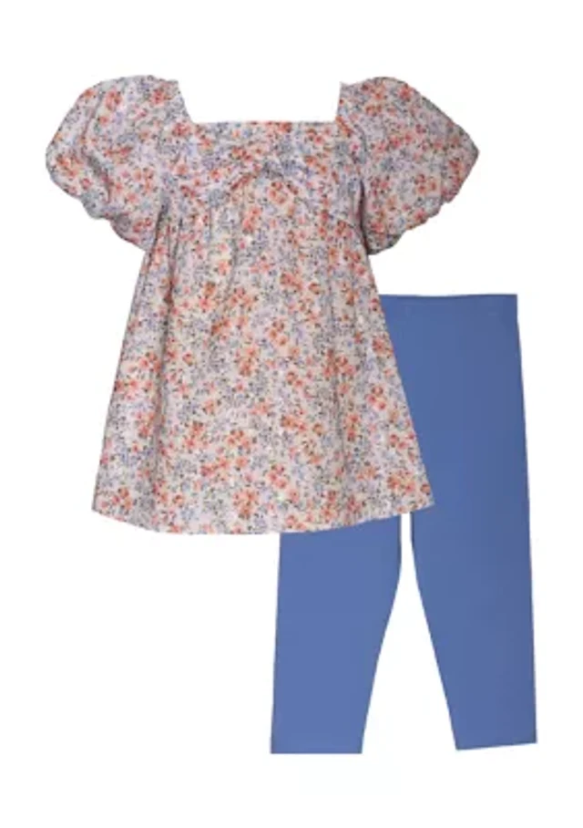 Toddler Girls Eyelet Top with Floral Printed Knit Leggings