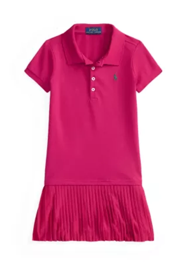 Girls 7-16 Pleated Stretch Mesh Polo Dress