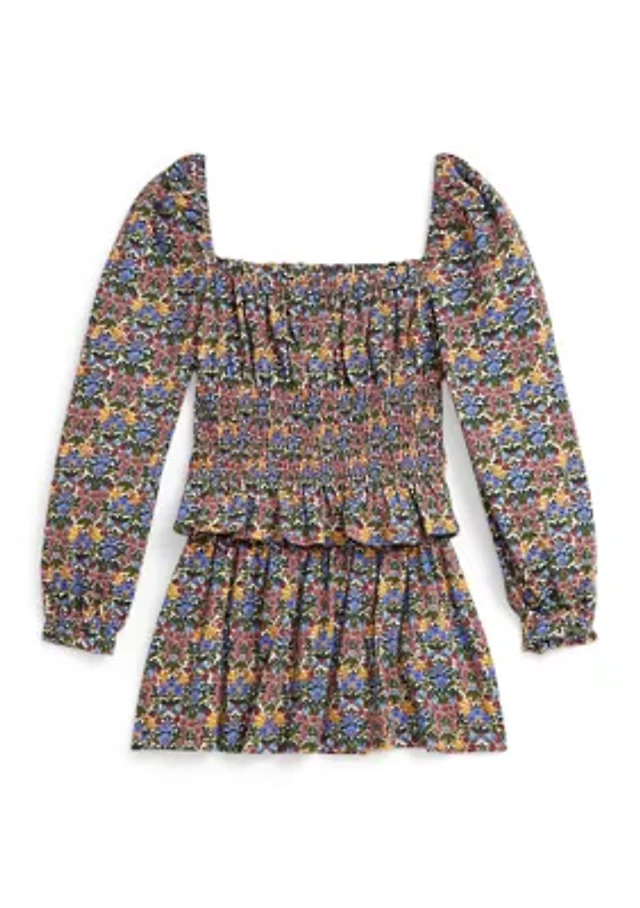 Girls 7-16 Floral Smocked Cotton Jersey Top & Skirt