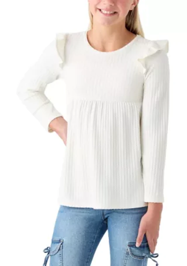 Girls 7-16 Striped Ribbed Long Sleeve T-Shirt