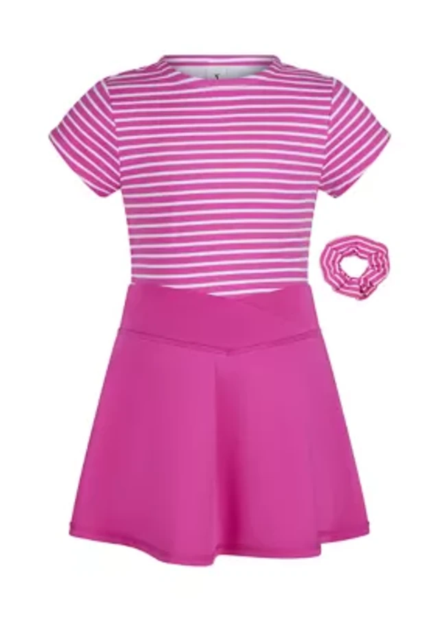 Girls 4-6x Jersey Stripe T-Shirt to Crossover Skirt Dress with Scrunchie
