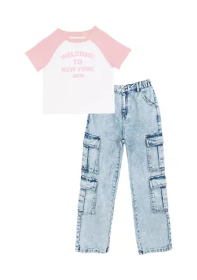 Girls 7-16 Raglan Graphic Baby T-Shirt and Jeans Set