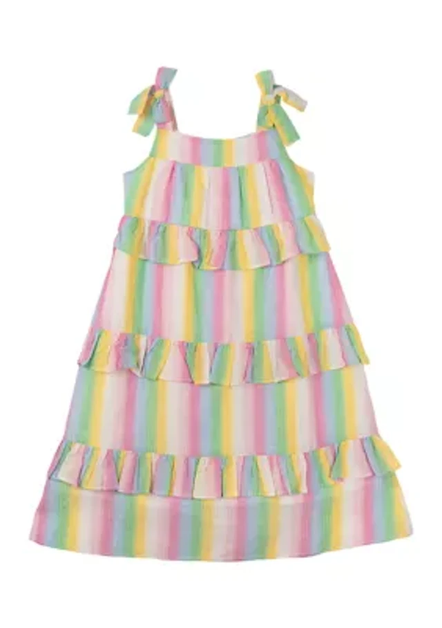 Girls 7-16 Stripe Ruched Ruffle Dress