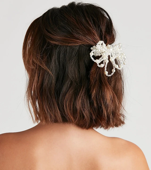 Posh Faux Pearl Satin Bow Three-Pack Hair Ties