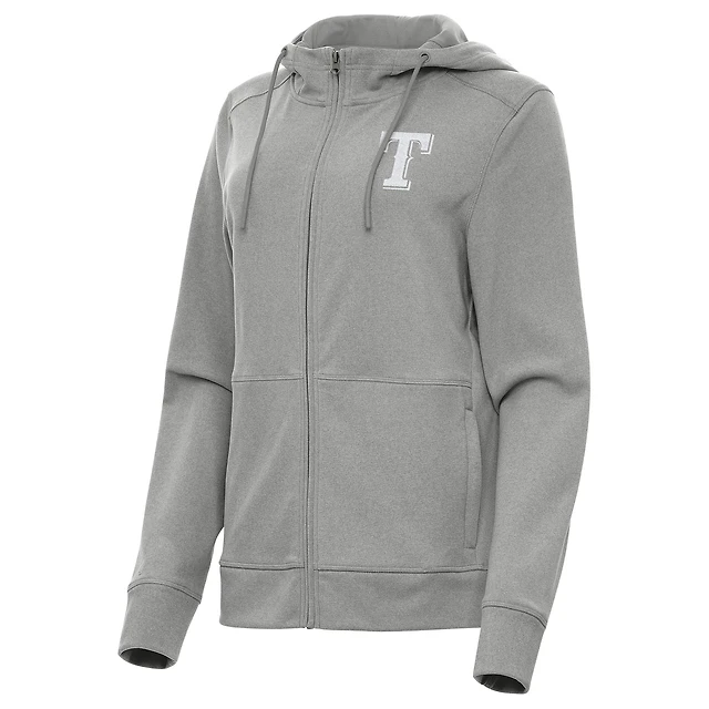 Women's Antigua Heather Gray Texas Rangers Seeker Full-Zip Hoodie Jacket