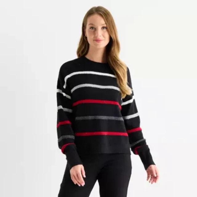 Liz Claiborne Womens Crew Neck Long Sleeve Striped Pullover Sweater