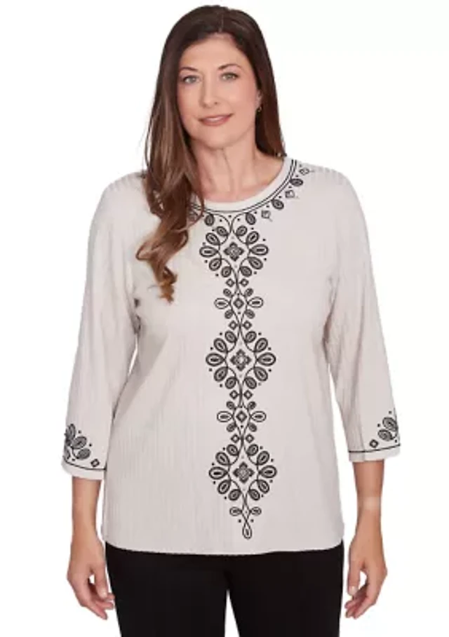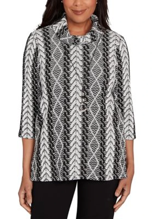 Petite Long Sleeve Jacquard Crew Sweater