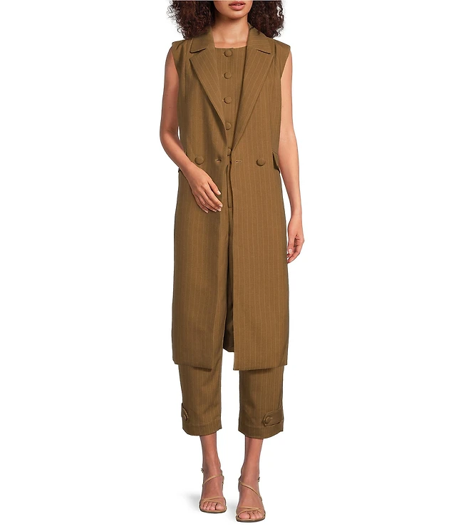 Lucy Paris Anna Woven Scoop Neck Sleeveless Belted Button Front Vest