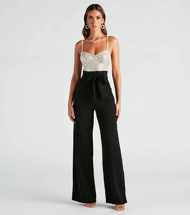Catch Me Sequin Wide-Leg Jumpsuit