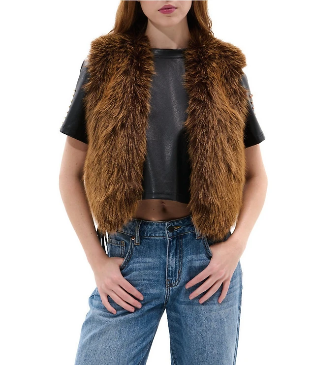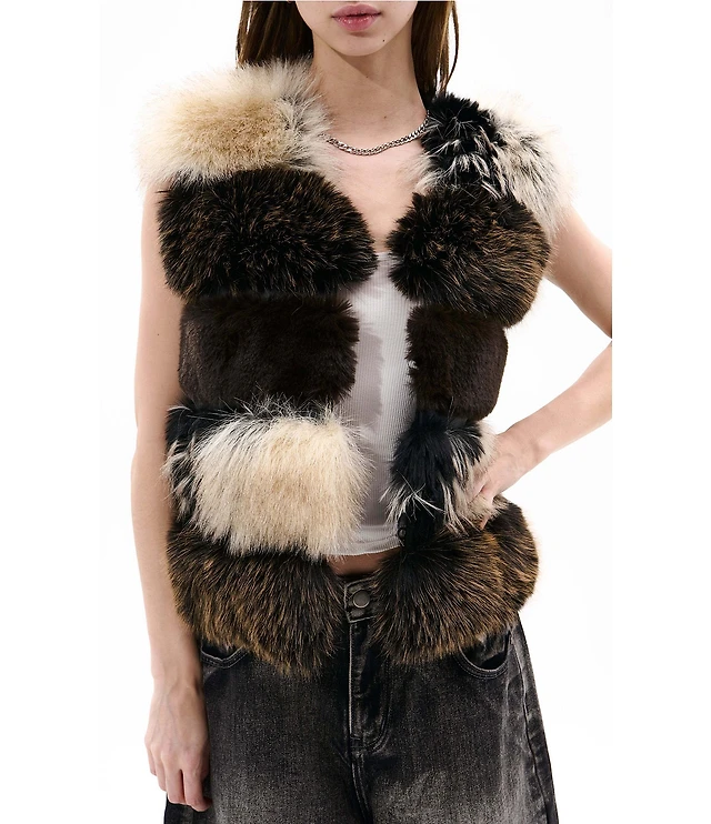 Azalea Wang Vail-Brown Multi Faux Fur Open Front Vest