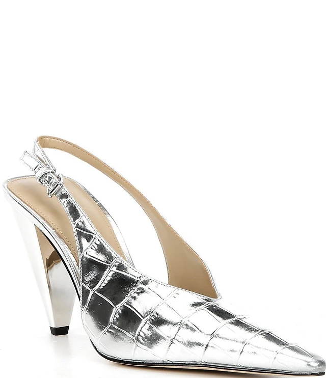 J. Renee Stasia Croco Embossed Patent Sling Back Pumps