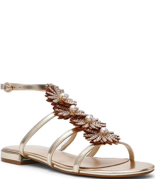 Copper Key Lucia Pearl Ornament T-Strap Dress Sandals