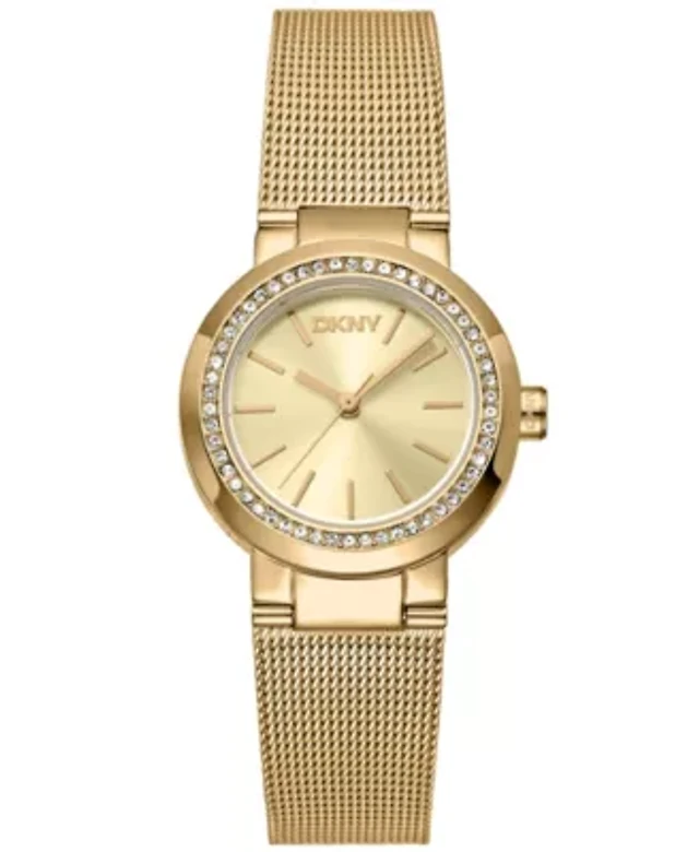 DKNY Women's Crystal Dial Markers Crystal Bezel Two-Tone Gold Stainless Steel Bracelet Watch 30mm 50M